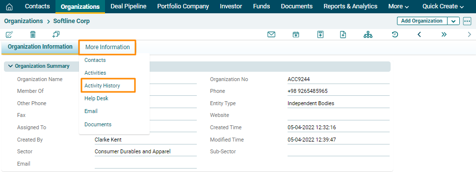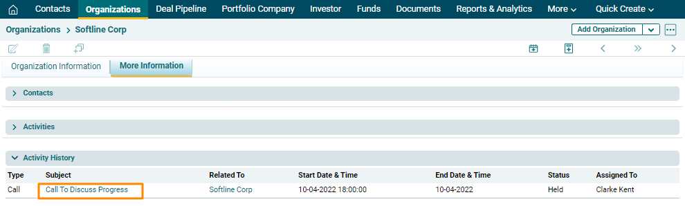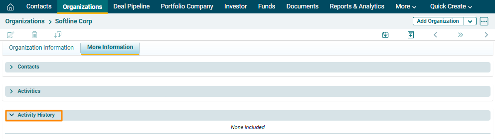 2. Alternatively, click on More Information tab. There are several panels here, including Activity History panel. Any activity, when completed, appears here.