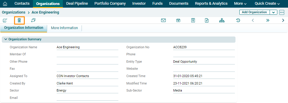 To delete an organization