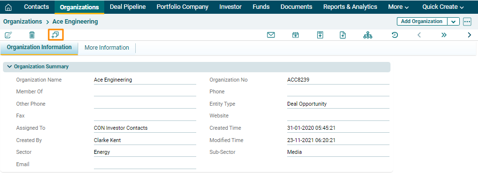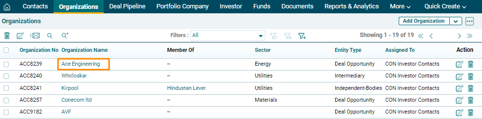 organization in Record View, follow the below steps: