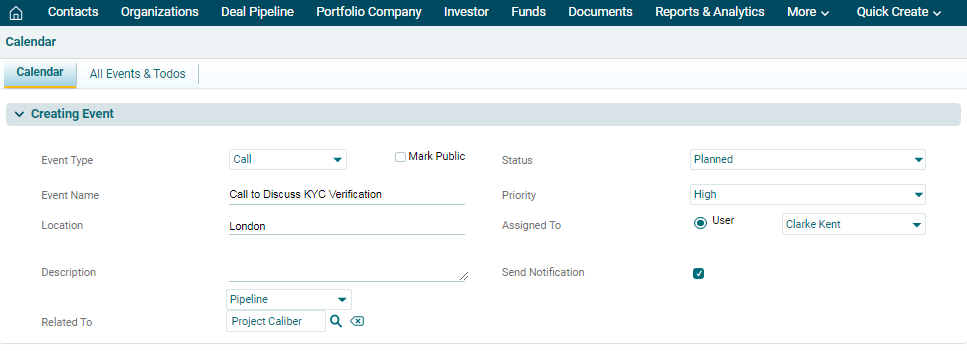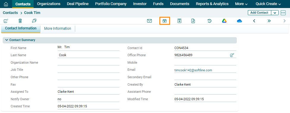 9. The Event will be listed in the Activities Panel under the More Information Tab. Click on the Edit or Delete icons to make changes.