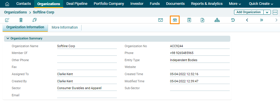 1. Click on an Organization for which event has to be created.