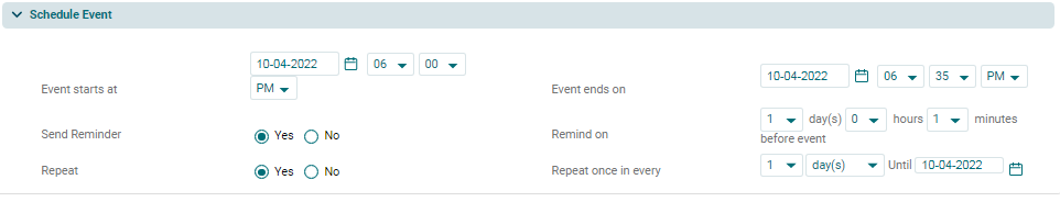 4. In the Schedule Event Panel, specify the