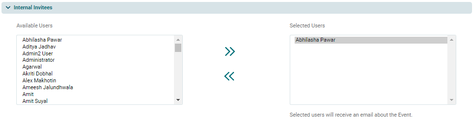 5. Internal Invitees panel allows you to send