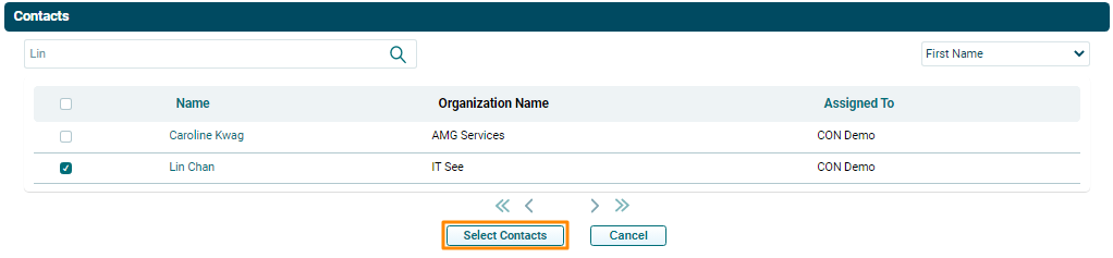 is displayed. Check the box against the name of the desired contact. Click
