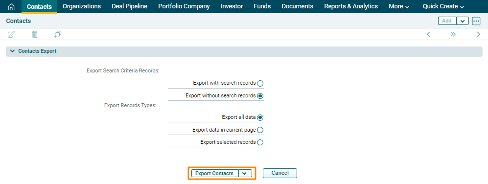 2. Click on the three dots menu next to Add Contact button. Click on Export to Excel.