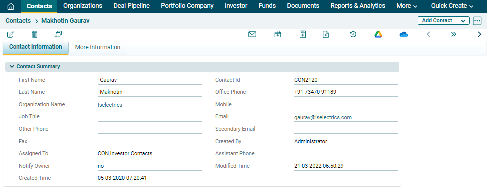 primary details pertaining to a contact at the time of creation. It has six