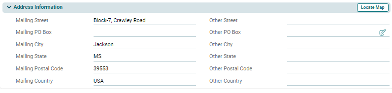 This panel allows you to enter primary mailing address as well as alternate address of the contact.