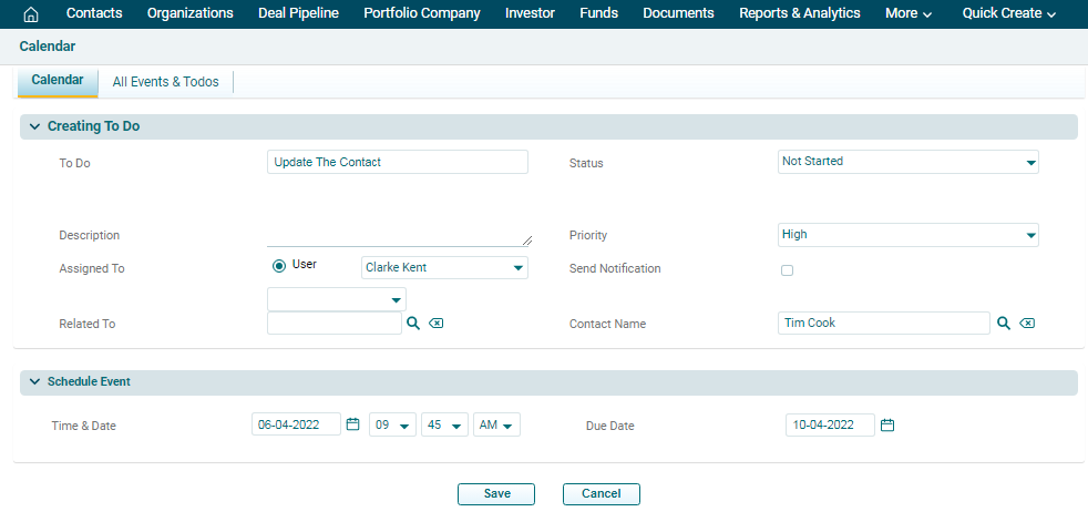 is displayed. In Creating To Do panel, you can add the details