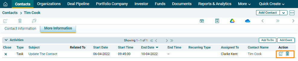 Information Tab. Click on the Edit or Delete icons