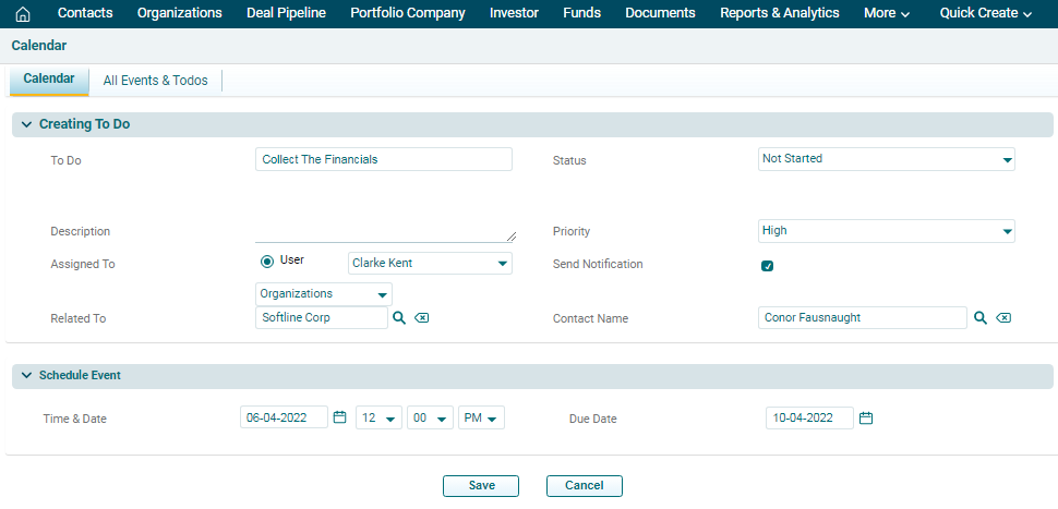 5. The Event will be listed in the Activities Panel under the More Information Tab. Click on the Edit or Delete icons to make changes.