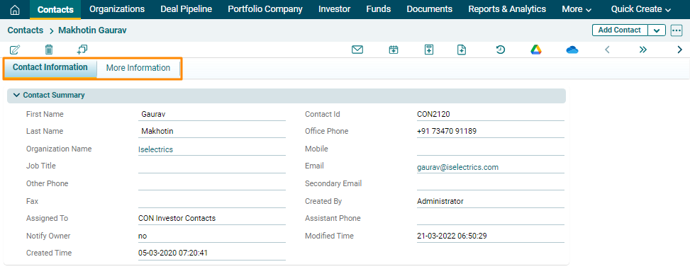 5. The created Contact can