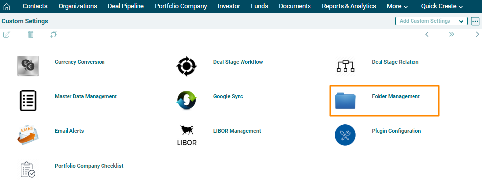 2. The list of folders is displayed. Click on Add Folder button in the top right corner of the panel.