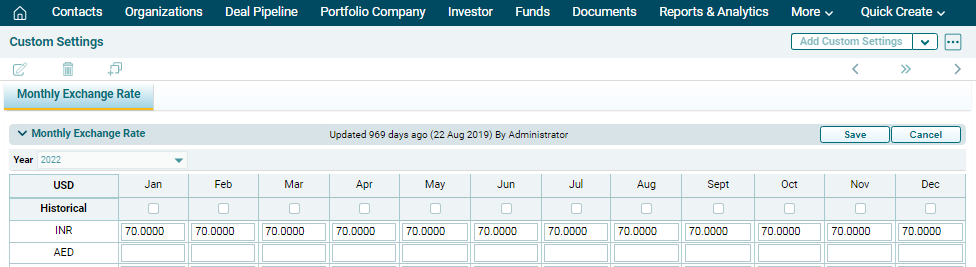 There are a number of operations you can perform on the Monthly Exchange Rate Setup and Daily Exchange Rate Setup tabs. These operations are the same for the two tabs.