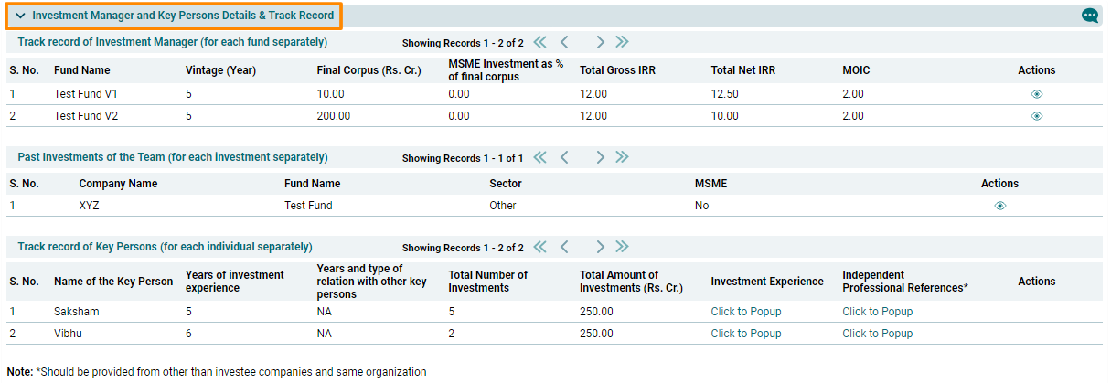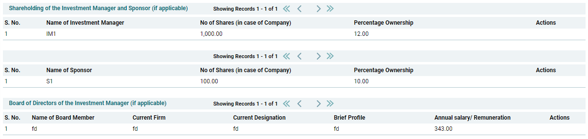 In this sub-panel AIF user needs to enter the track record of Investment Manager of working on past funds. Each fund is separately recorded.