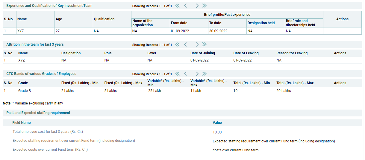 In this sub-panel AIF user needs to enter the total experience and qualification of the key investment team, to check whether they are fit to handle the investment.