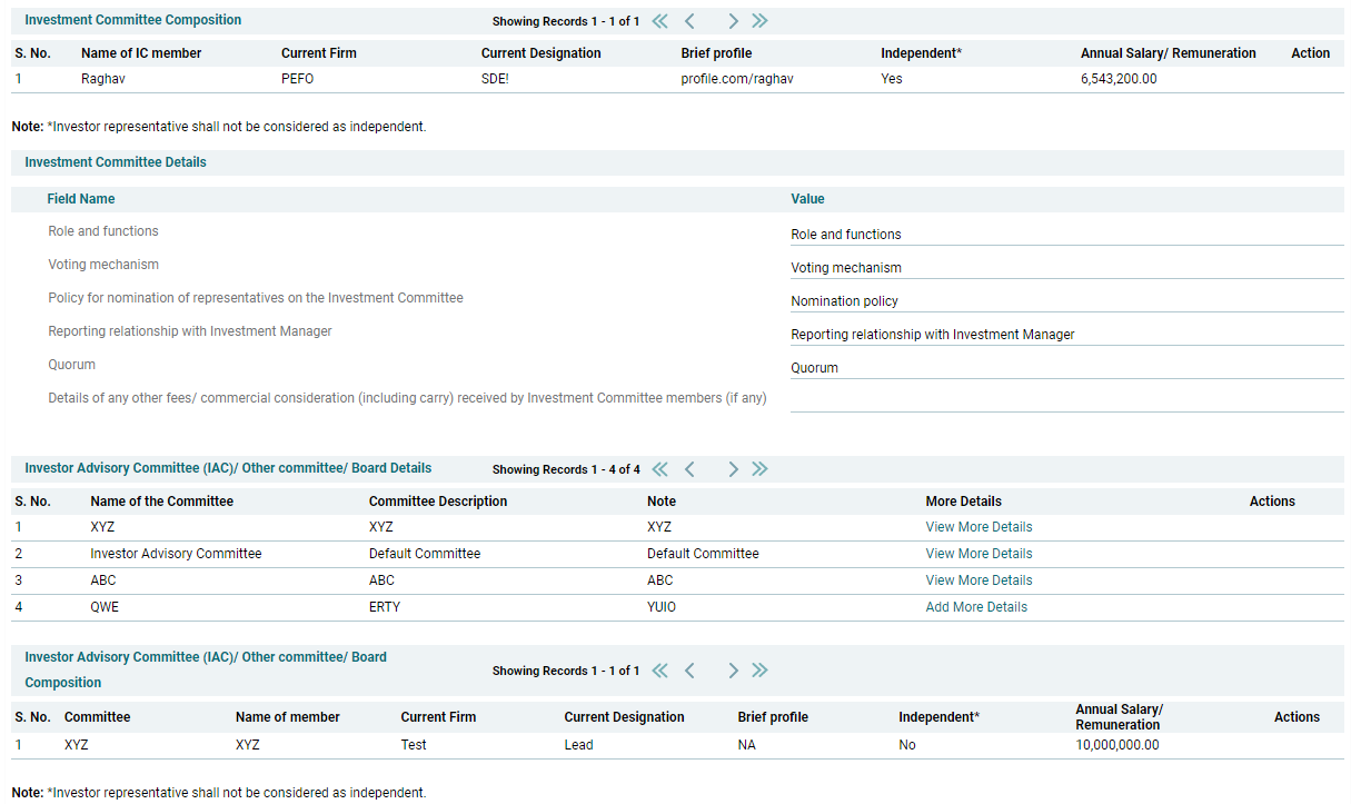 In this sub-panel AIF user needs to enter the details of Investment committee including: