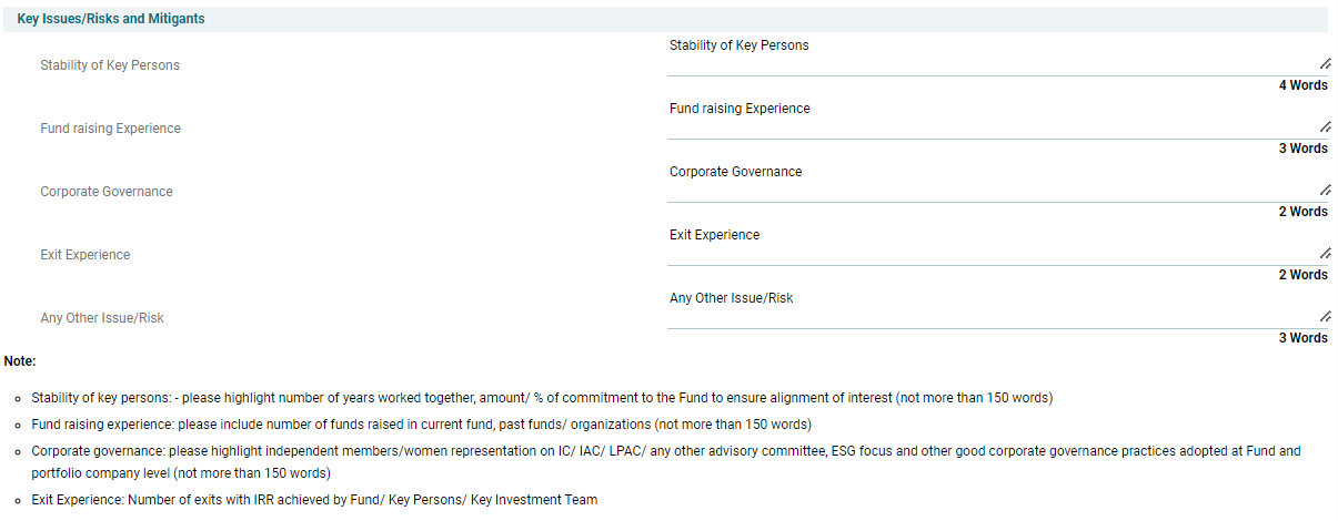 In this sub-panel AIF user needs to mention the risks, issues, and mitigants associated with the proposal.