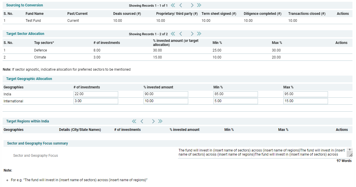 In this sub-panel AIF user needs to mention a brief summary of fund’s sector and geographical allocation.