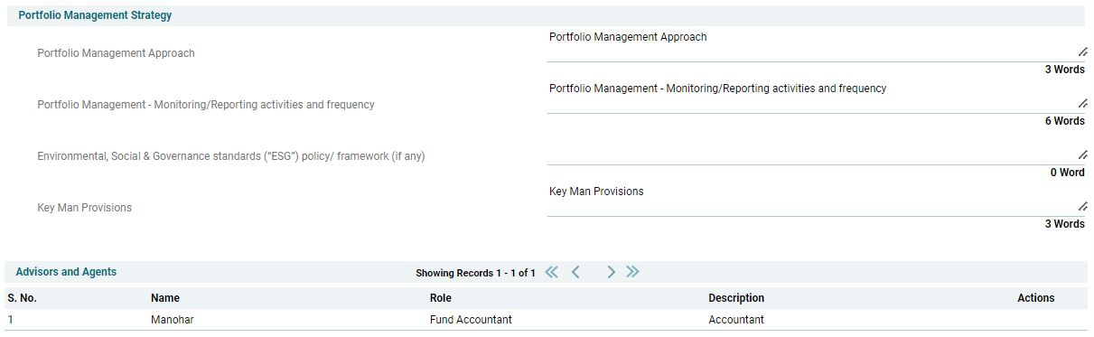 In this sub-panel AIF user needs to mention the approach for portfolio management, its monitoring, ECG policies, etc.