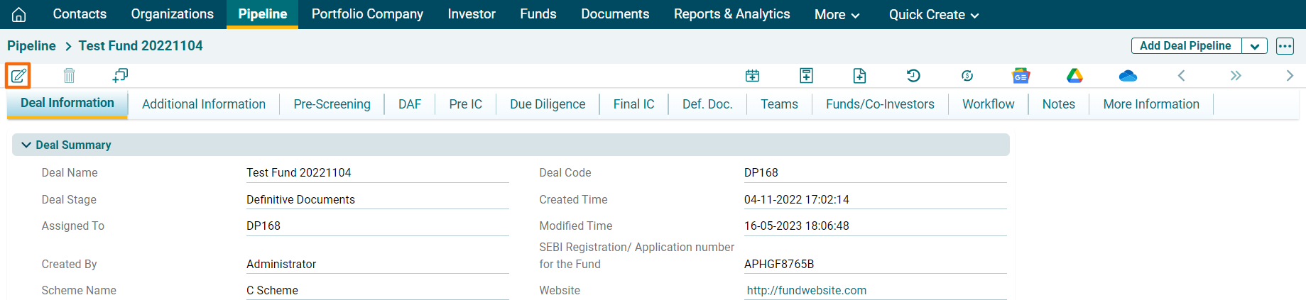 The pipeline will be empaneled as an approved Direct Fund and will be visible to AIF under the Funds module.