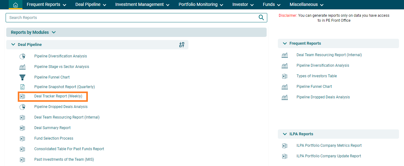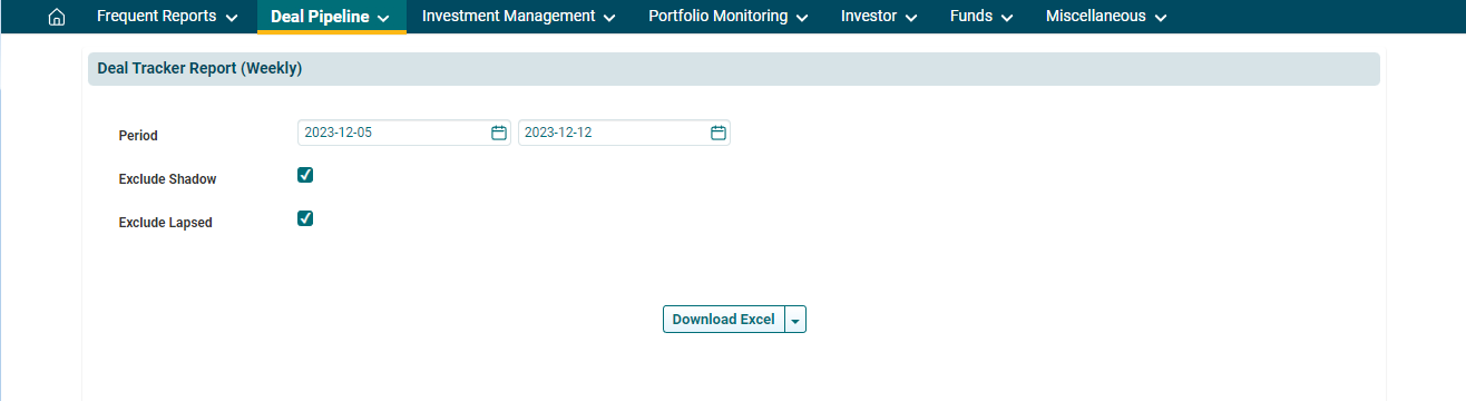 3. The Deal Tracker Report window is