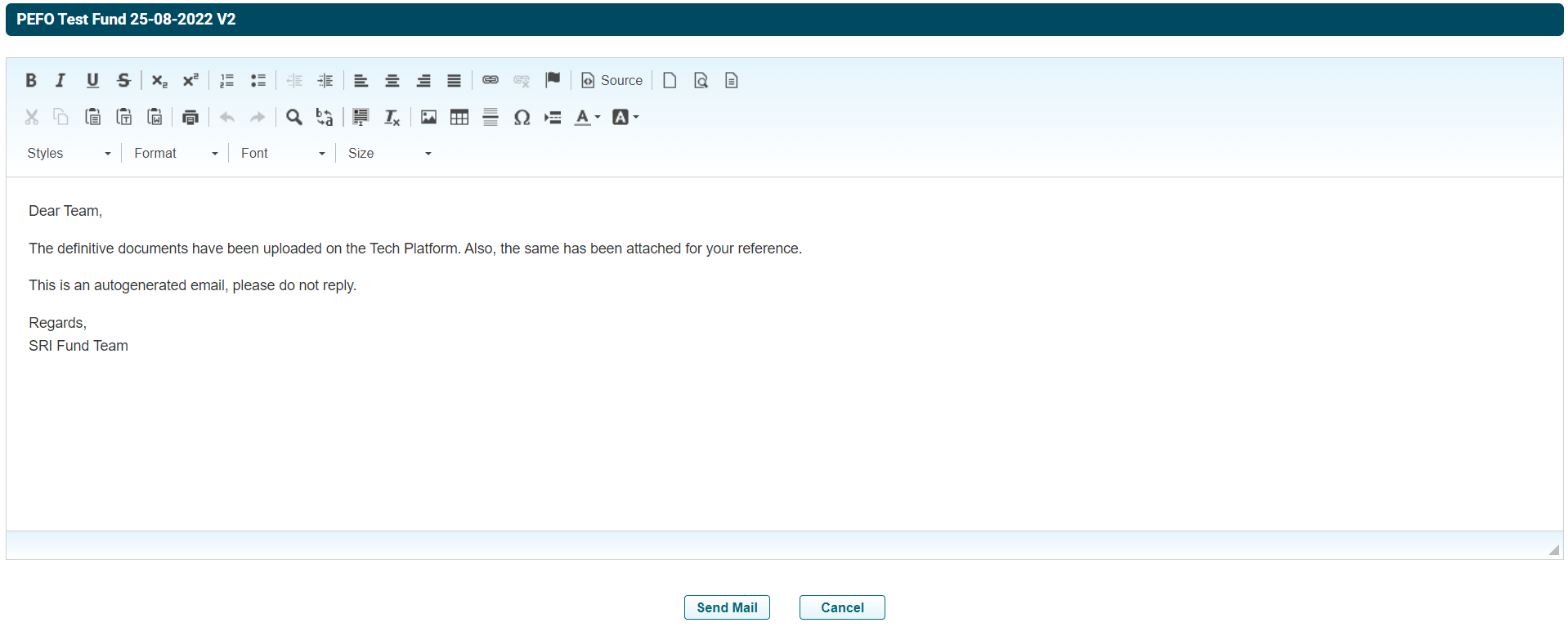 2. A new window is displayed. The email can be previewed, updated, and scheduled. Click Send Mail.