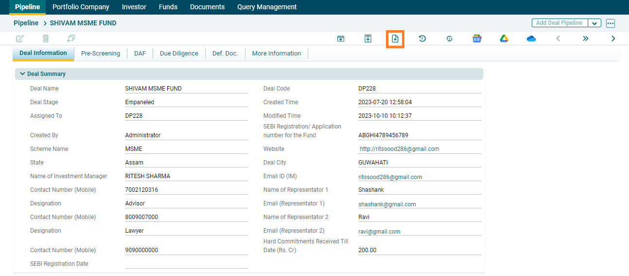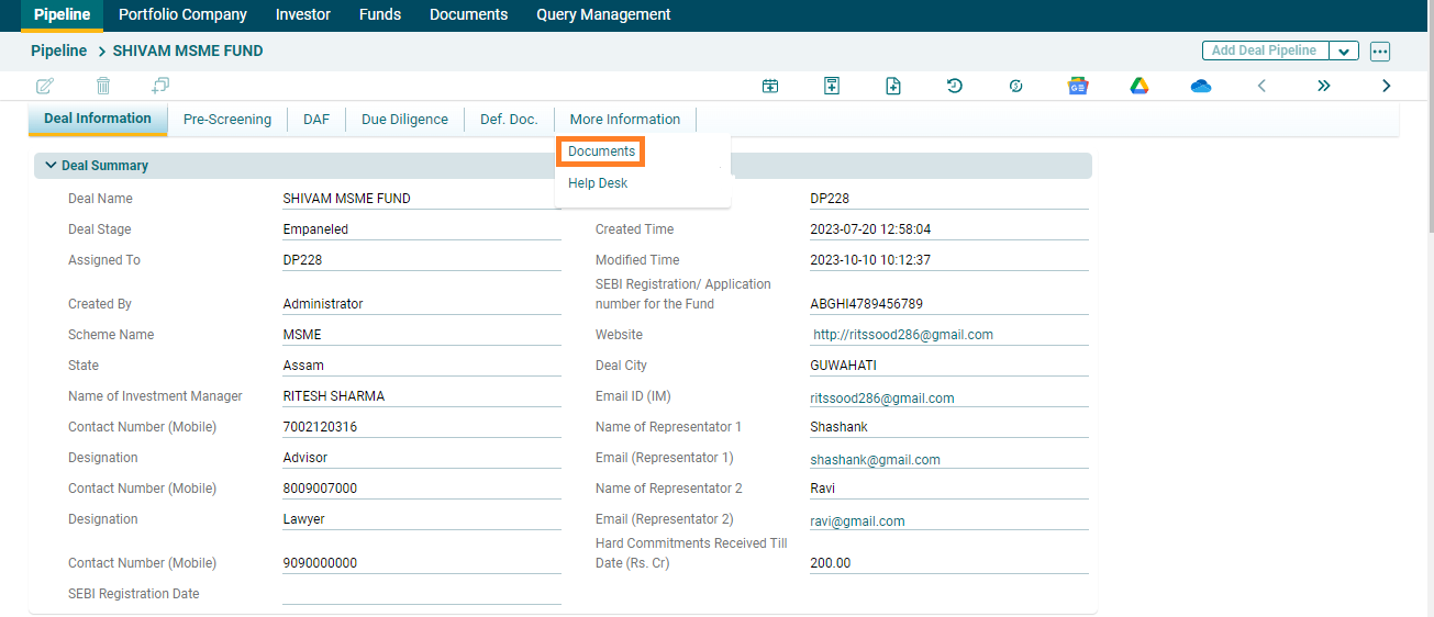 1. Click on Deal Name for which documents are to be uploaded.