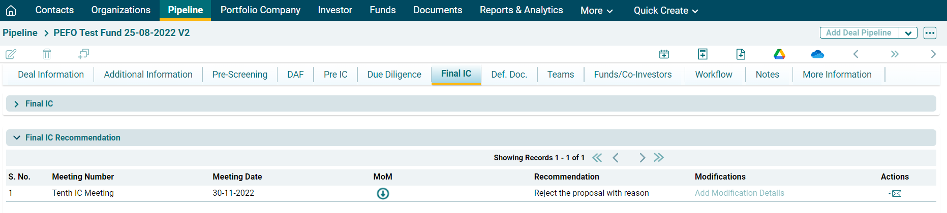 auto-populates. Recommendation can be marked which will move the application to next stage if it gets approved.