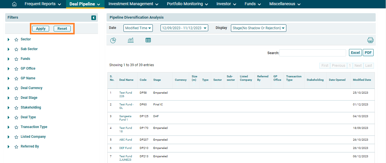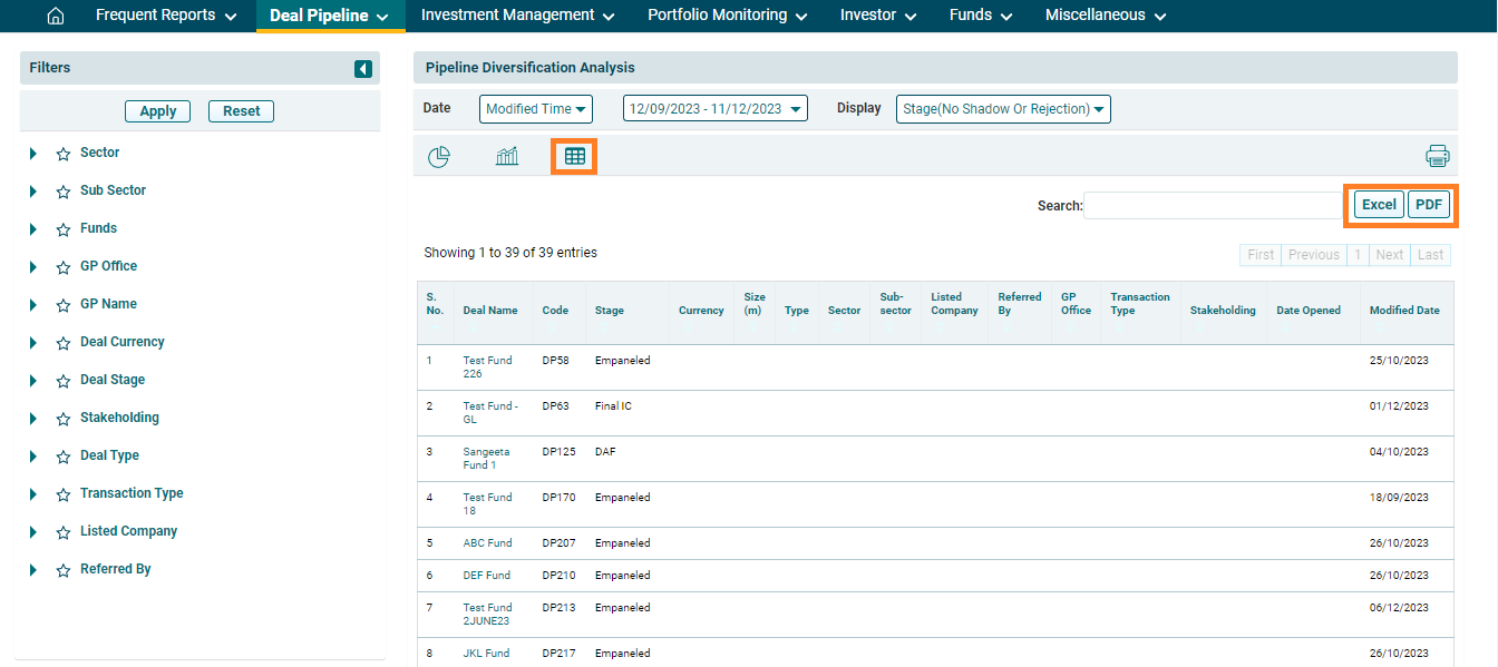 6. You can also view the underlying dataset for the above graphs. Click on the Data Set icon. You can download the dataset in Excel and PDF format. Click on the