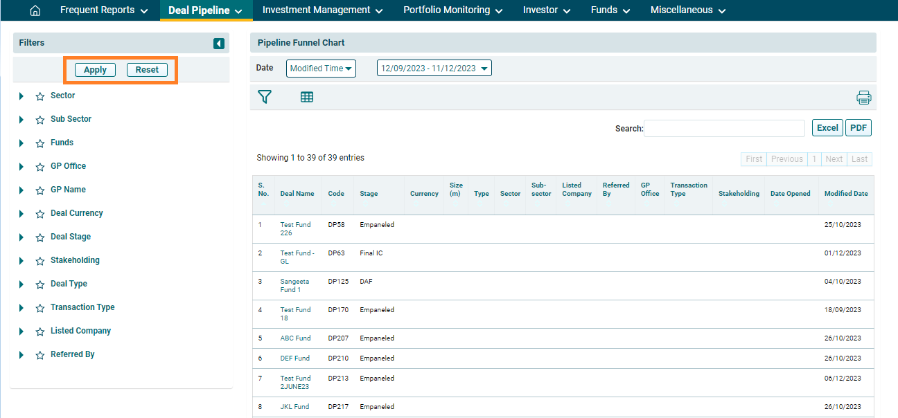 displayed. It displays the data in the funnel chart form based on the set parameters.