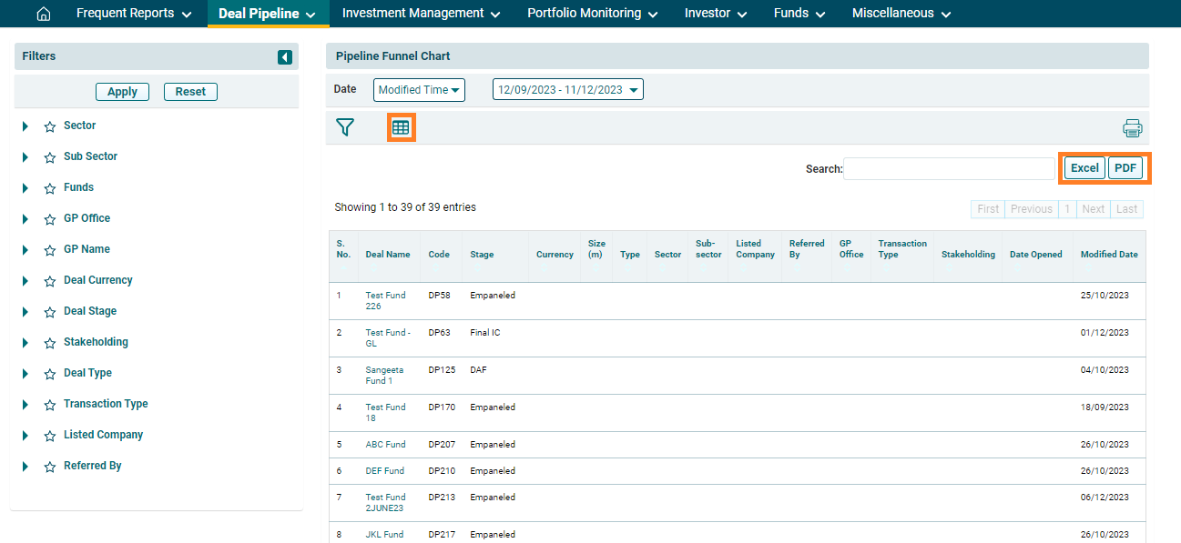view the funnel based on the changed parameters. You can download the funnel in various formats. Click on the