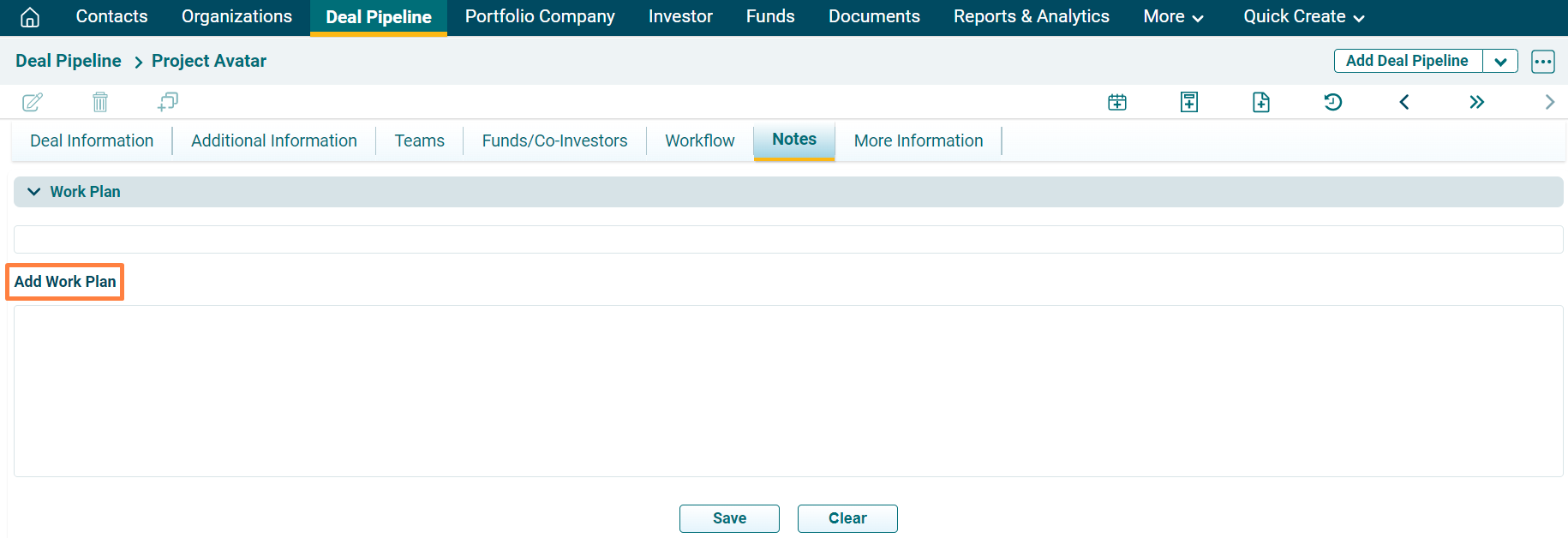 1. Specify the work plan in the Add Work Plan field. Click Save.