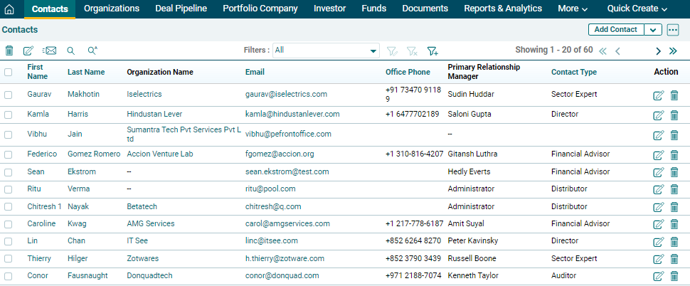 2. Click on the down arrow button next to Add Contact button in the top right corner. Click on Import from Excel.