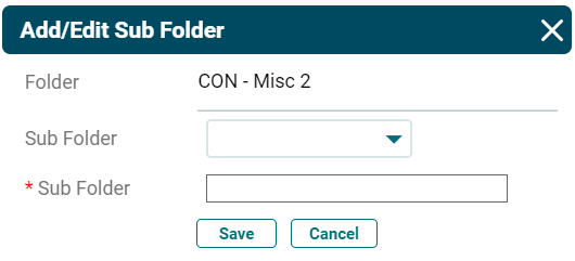 ) icon in the Sub-Folder column against the folder you wish to a sub folder to. The Add/Edit Sub Folder window is displayed. Enter the following details.