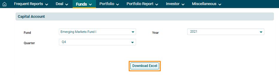 dashboard by clicking Capital Account in the Funds panel or from the Funds drop-down menu in the blue