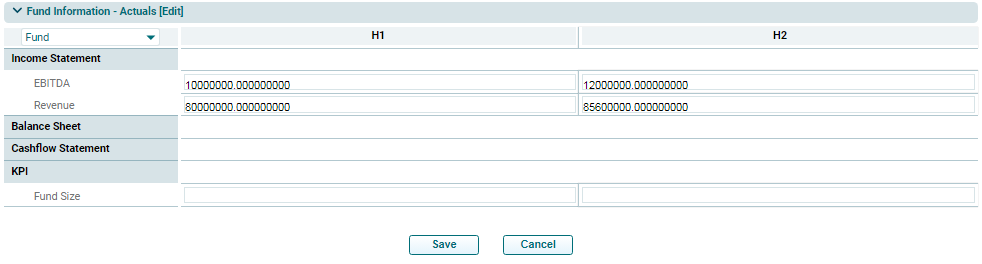 2. The Fund Information- [Panel Name] Edit window is displayed. Enter the details and click Save.