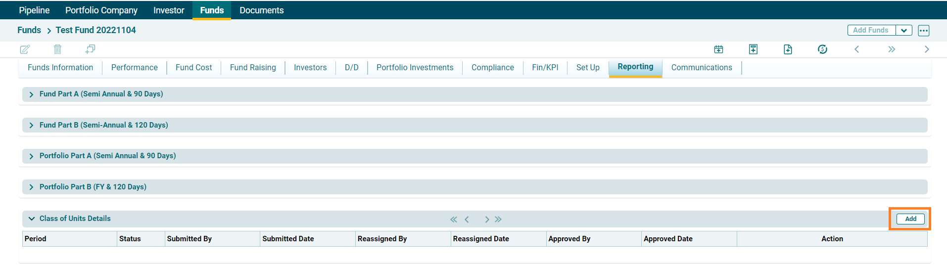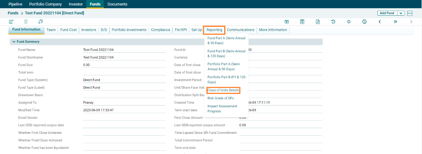 3. A new window is displayed. You can access the report from the dashboard by clicking Class of Unit Details in the Reporting tab in the blue vertical bar.