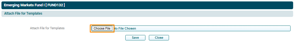 2. The Attach File For Templates Window is displayed. Click on Choose File.