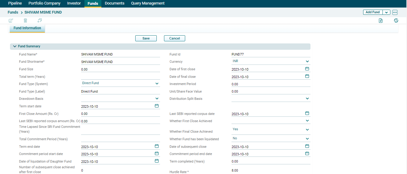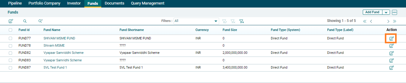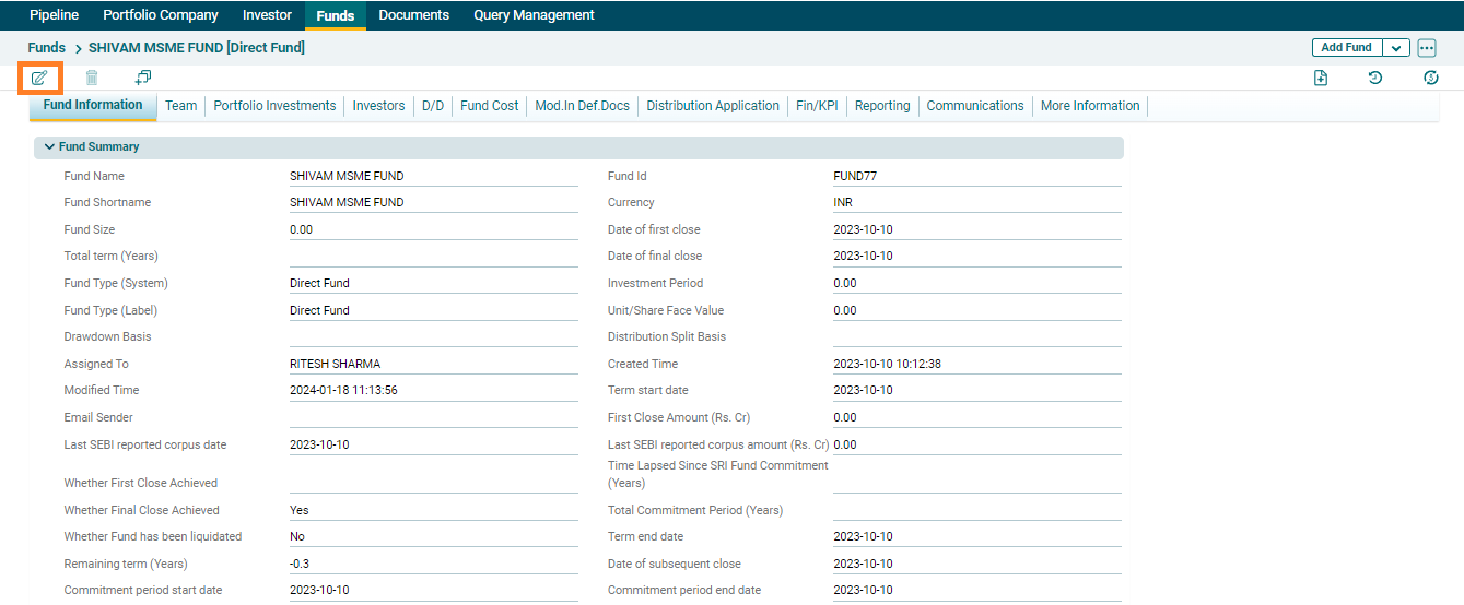 To edit a Fund in Record View, follow the below