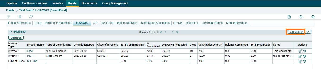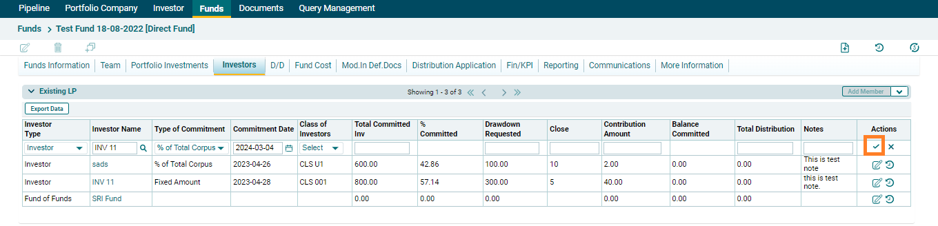 Existing LP panel auto populates the details of only those investors who have given hard commitments as captured by AIF in Detailed Application Form (DAF).AIF cannot delete these investors, however, he can add new investors in this panel who were initially not added.