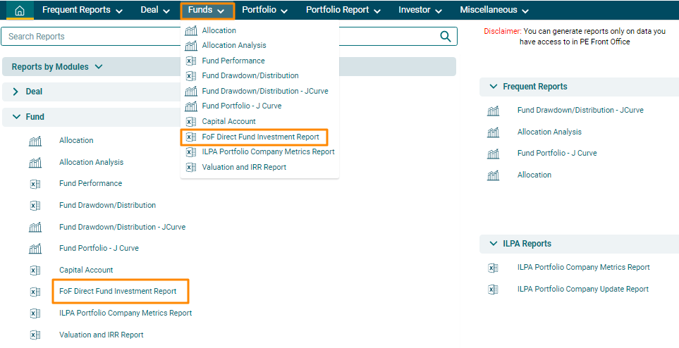 Direct Fund Investment Report window is displayed. Enter the following details: