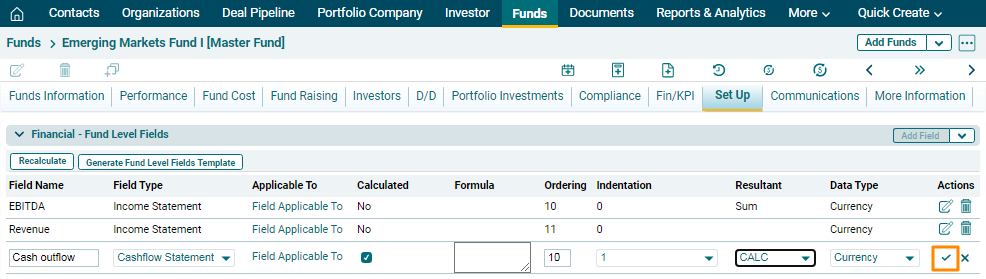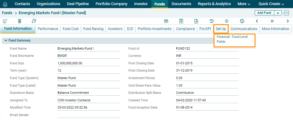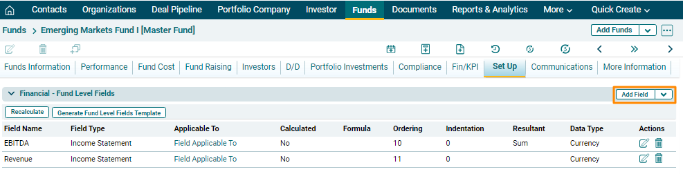 1. Navigate to Set Up tab and click on Financial Fund– Level Fields.