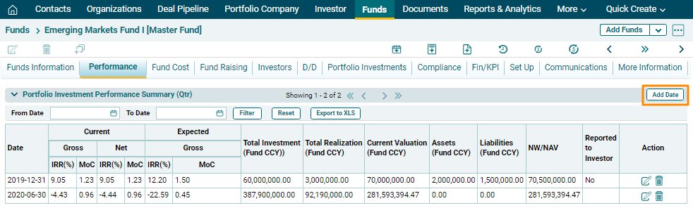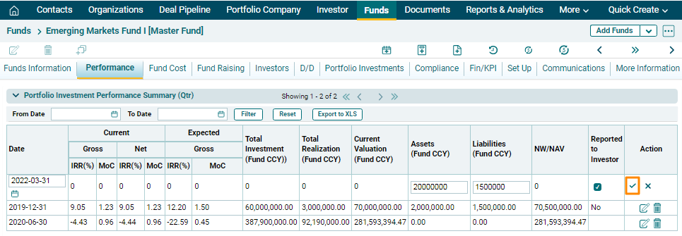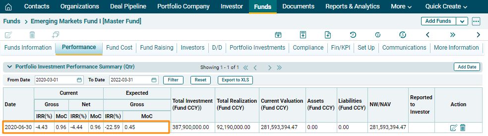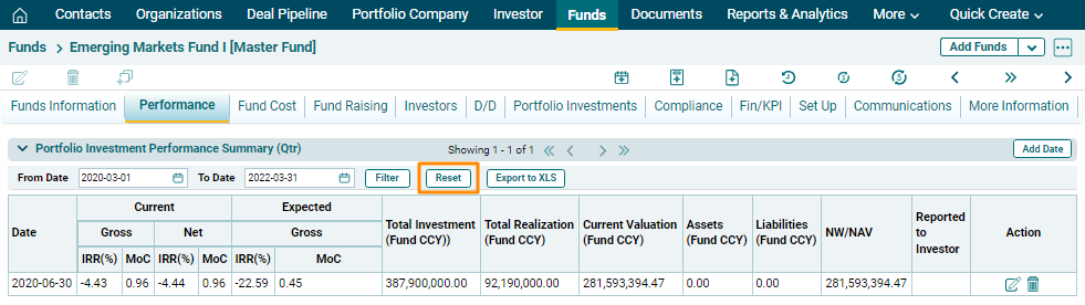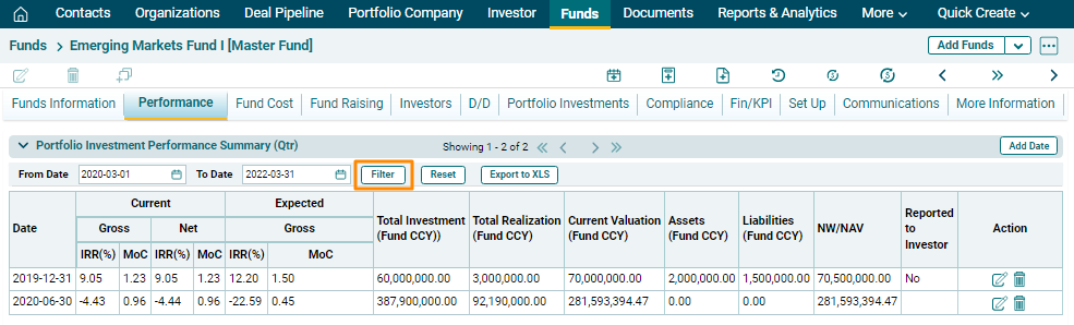 Portfolio Investment Performance Summary (Qtr) panel allows you to view the complete overview of a