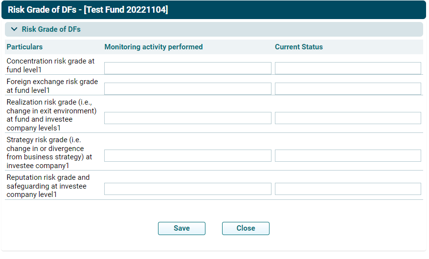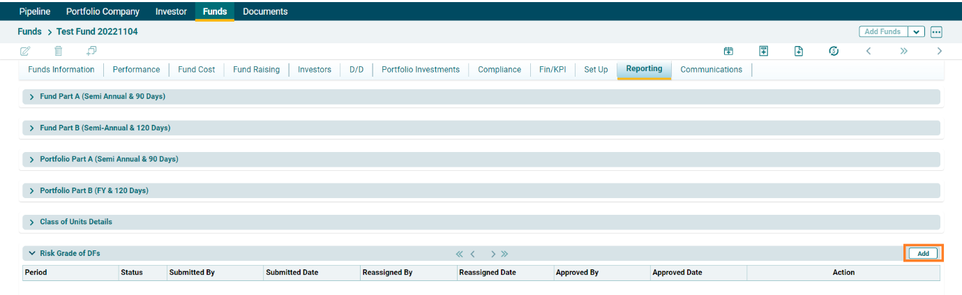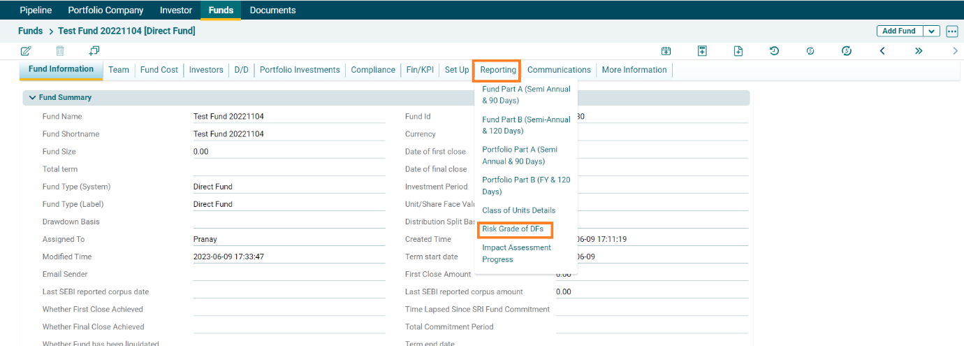 3. A new window is displayed. You can access the report from the dashboard by clicking Risk Grade of DFs in the Reporting tab in the blue vertical bar.