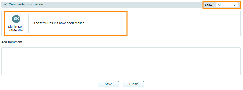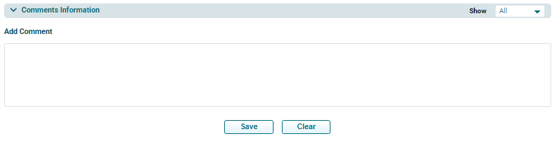 Once you have added a comment, it cannot be deleted. It is always displayed in the Comments section. You can also apply the Show filter to see relevant comments.