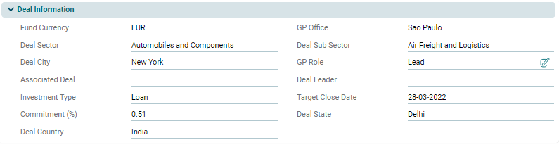 - Display: To view all the deals including or excluding Exited and Non-existed.