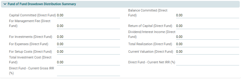 In this panel, AIF can view the details of total drawdown and distribution with investors. This is an auto-populated panel flowing from D/D tab in Funds Module