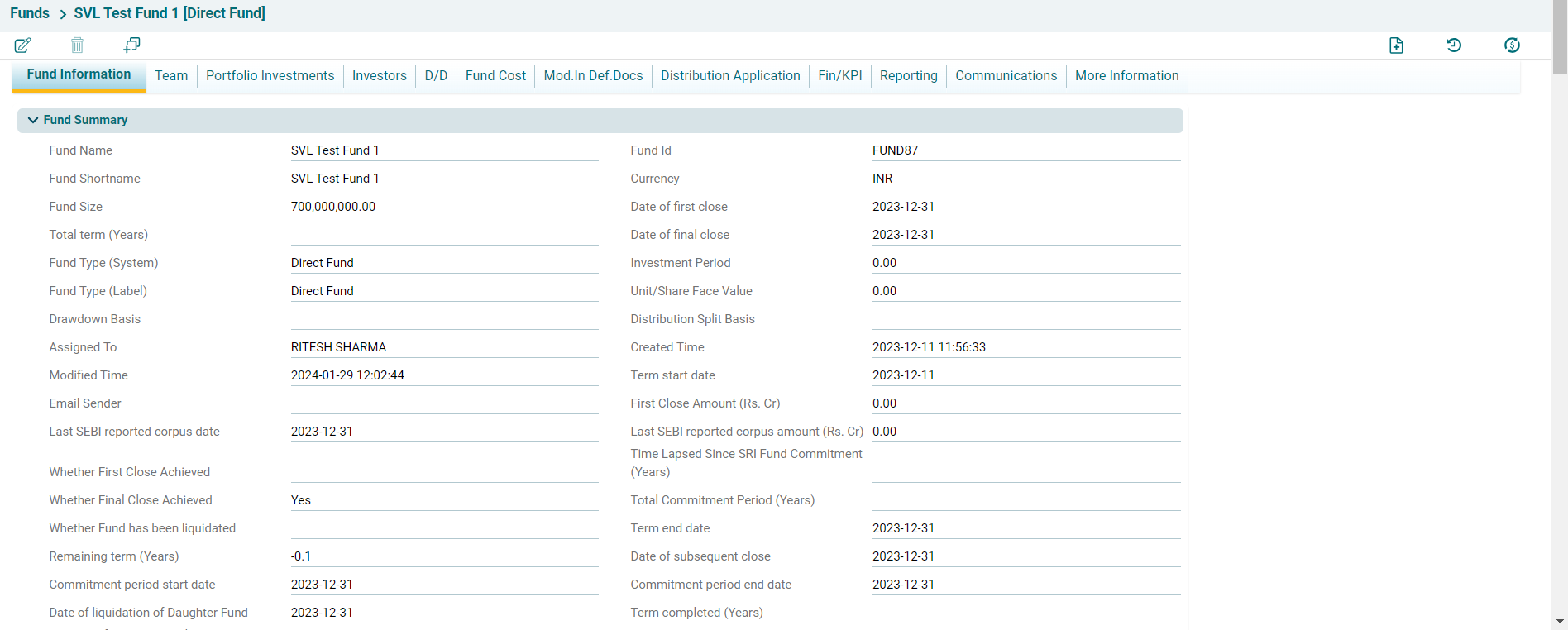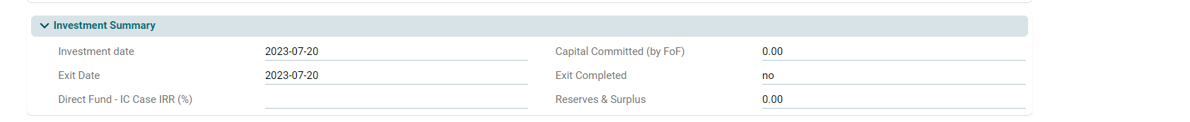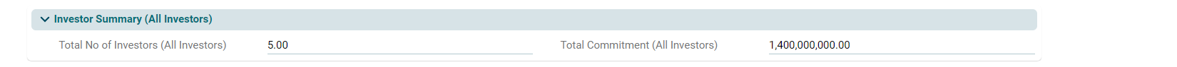 In this panel, AIF can view details of the number of investors in the fund and their commitment. This is an auto-populated panel flowing from Investors tab in Funds Module.