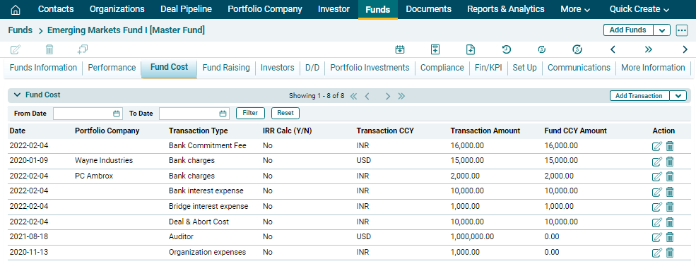 - Total Realization (Fund CCY): Displays the total realization from the fund in fund currency.