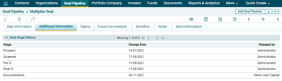 The Co-Investors panel contains the details of the co-investors related to that deal. The details included are: